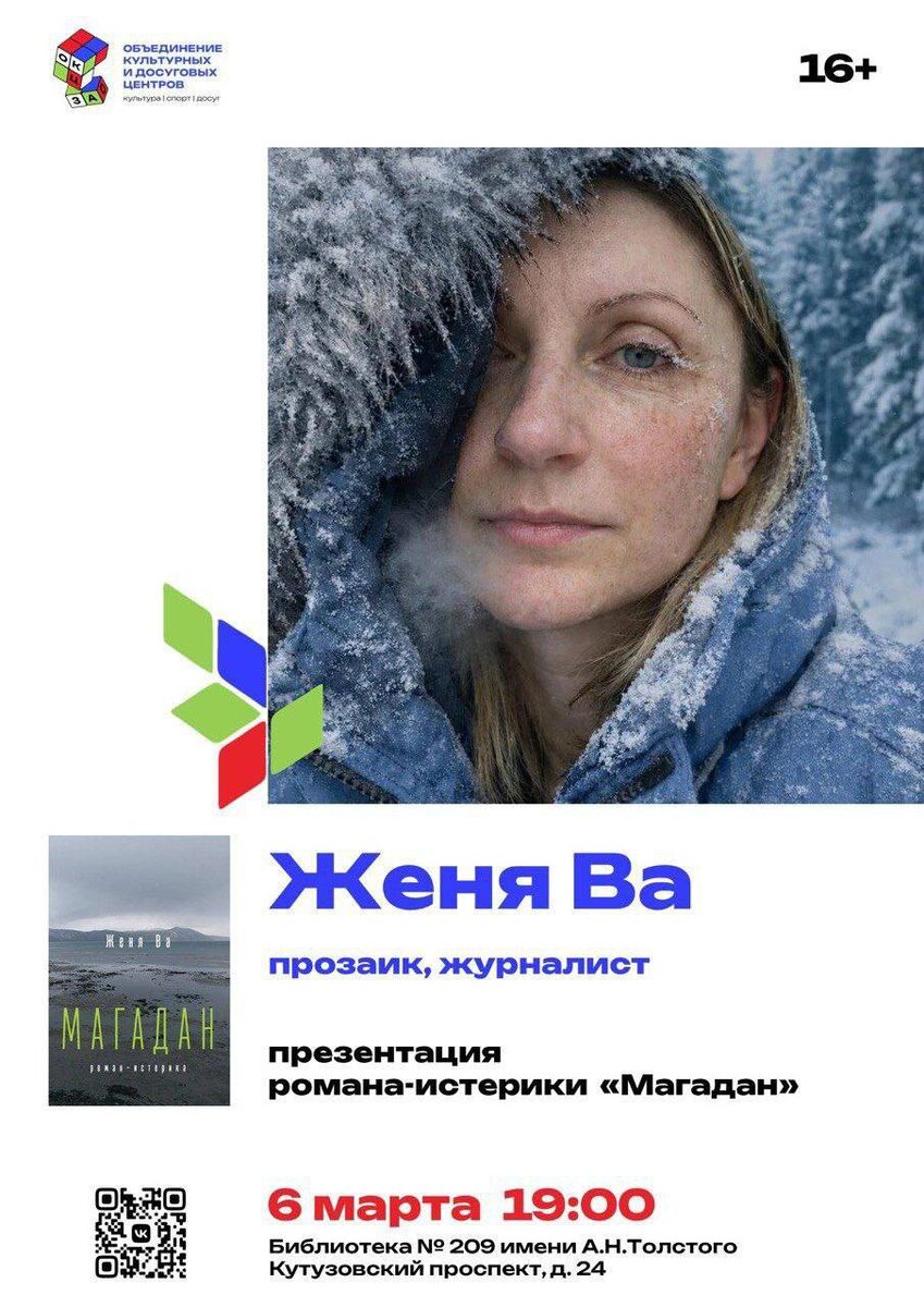 Загадочный роман о жизни и смерти, любви и судьбе, высшем мире и Магадане 6 марта в Москве (Библиотеке № 209 имени А. Н. Толстого) пройдет встреча с писательницей Женей Ва, где будет представлен роман-истерика «Магадан», подготовленный издательством «Спартаковская редакция». Не пропустите! Вход свободный. Роман «Магадан» Жени Ва разворачивается в московских квартирах, на питерской набережной и в Магадане — городе, который не отпускает от себя и хранит свои загадки. Сложное, полифоническое повествование заставит вас по-новому взглянуть на привычные вещи и погрузиться в мир мистики и тайн! Главный герой, Михаил, приходит в себя на грани мира живых и мертвых. Он окунается в древние поверья и легенды, становится героем чужих снов и пытается переосмыслить свою судьбу. В лабиринте памяти Михаила скрываются чудовища, требующие ответов. Почему умерла его дочь? Почему Магадан редко принимал чужаков, но ещё реже отпускал? Что связывает его главную любовь с пандемией, которая накрыла сначала