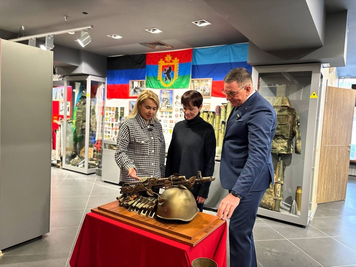 Инна Колыхматова сообщила о пополнении коллекции Центра воинской славы новыми экспонатами в годовщину начала СВО. Артур Парфенчиков передал центру уникальную композицию армейского творчества, где соединились символы защиты и жизни: стальной шлем, ручная граната, автомат Калашникова, обвитый стеблем розы, гильзы и пулеметная лента. Также в коллекцию поступила гильза от танкового снаряда. С руководителем Центра Елизаветой Васильевой и специалистом Валерием Лазаревым обсудили плановые мероприятия для молодежи и школьников. Глава Петрозаводска отметила искренний интерес ребят к истории страны и пригласила жителей и гостей города посетить Центр воинской славы.