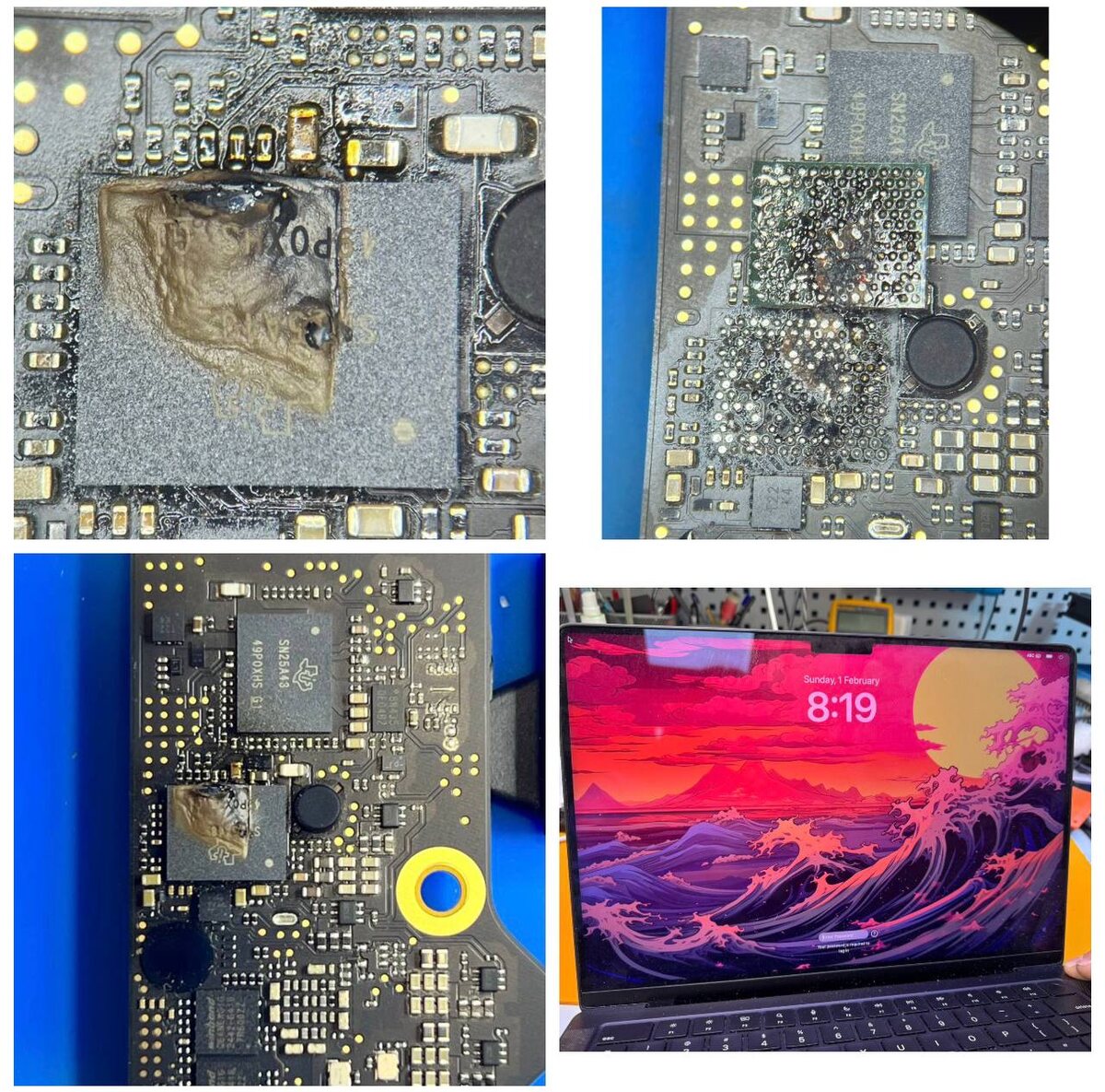 MacBook Pro 14” M4 был залит, выключился. Клиент пытался заряжать, пахло горелым. 🫣Сгорел контроллер, прогорел текстолит. Но получилось починить без одного порта.