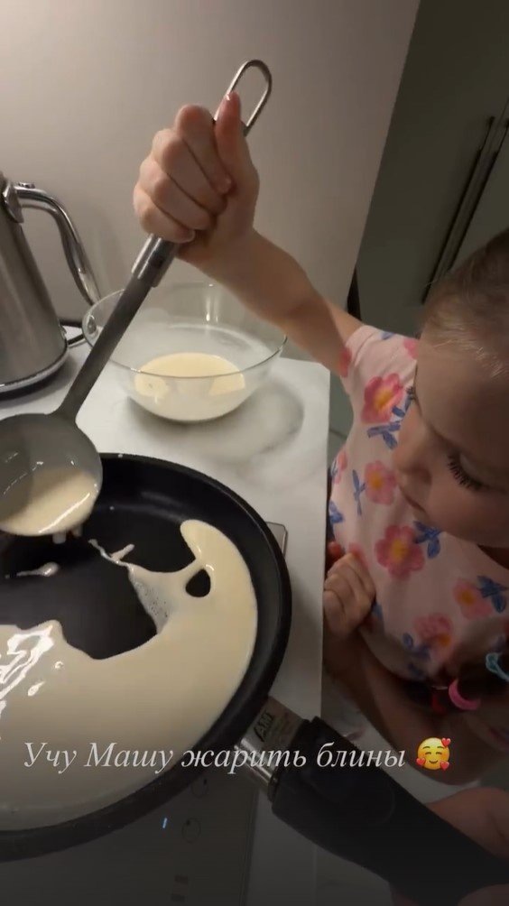 Лера Кудрявцева по случаю Масленицы решила научить дочь самостоятельно печь блины. Телеведущая записала процесс на видео и поделилась с подписчиками. На кадрах семилетняя Маша под руководством мамы наливает тесто на сковороду. «Буду помогать. Давай по кругу. Нормальный, толстенький будет!» — подбадривала девочку Кудрявцева. «Учу Машу жарить блины», — пояснила она в публикации. В гости к телеведущей приехала ее мама. Кудрявцева также сварила щи и приготовила творожную запеканку. На странице в социальной сети знаменитость опубликовала фото, где ее родительница позирует с внучкой. «Мамуля в гости приезжала», — подписала она снимок. Напомним, Маша родилась в браке Леры Кудрявцевой с хоккеистом Игорем Макаровым. Пара узаконила отношения в 2013 году. Ранее Лера Кудрявцева снялась в купальнике с дочерью. Также недавно сообщалось, что телеведущая публично высмеяла Наташу Королёву.