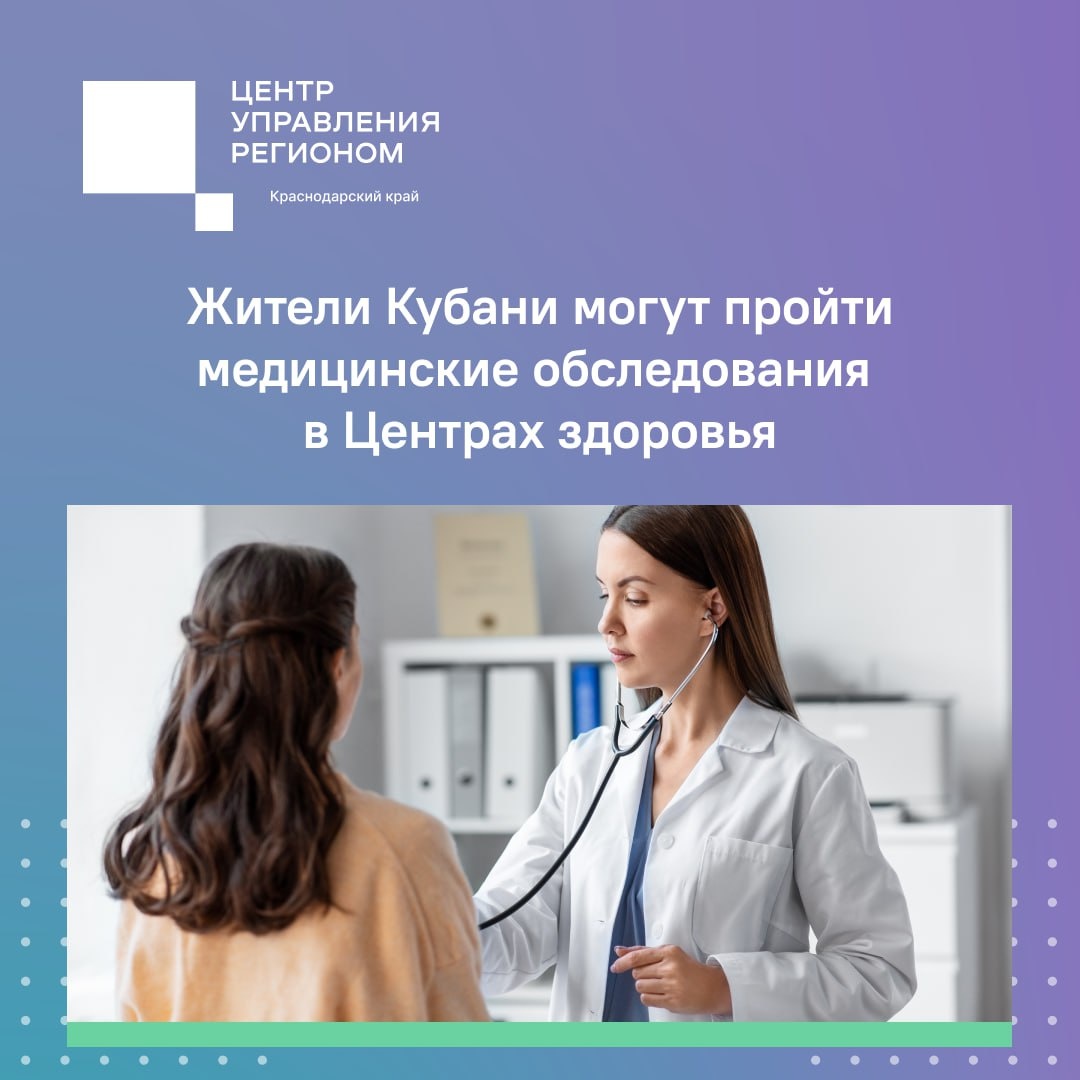 ! В Краснодарском крае работают 19 Центров здоровья. В прошлом году их посетили более 110 тысяч человек. Прийти на приём можно без предварительной записи. Обследование организма занимает не более 20 минут. Более подробная информация о региональных Центрах здоровья представлена по ссылке.
