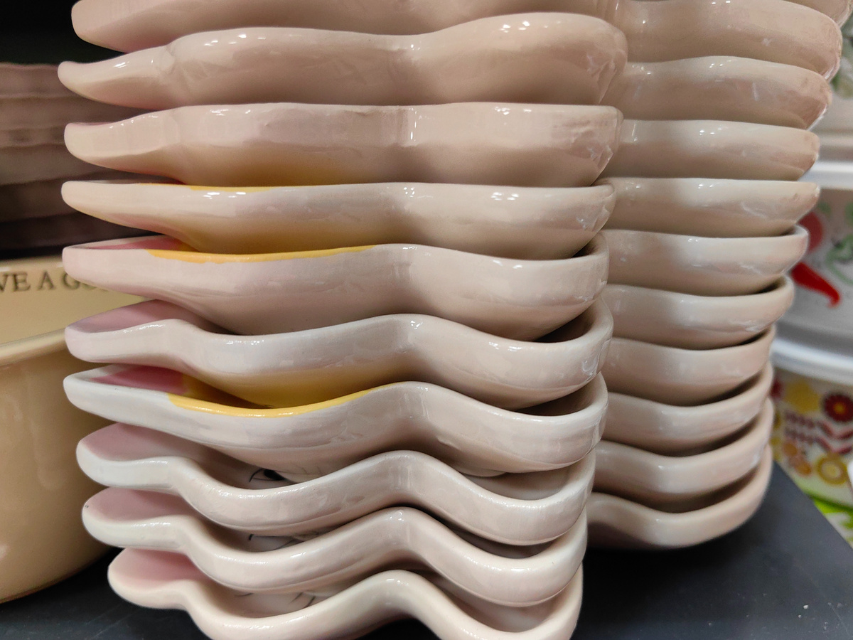 Новинки в Фикс Прайс, да еще какие! Будет много кошечек 🤗 Потянулась за первой, точно керамика. Видно, что форма необычная, сразу и не определить, что это такое. Нашла среди посуды. Для чего? А это кошечка. Хорошенькая десертная тарелка, фигурная. Улыбается, упитанная, воспитанная и довольная 🐈🌞 С такой тарелкой можно начать день с улыбки, с чаем или с кофе и десертом. Да, тарелка небольшая, 20,5 см. И по ширине не более 17 см. Точно керамика. У нас все тарелки одного варианта, на деле будут еще полностью светлые, только ушки розовые. Новинка будет не одна, еще должны привезти кружки с фигуркой кошки, в тон. Так что, можно будет собрать комплект. Опять же, в последнее время новинки хороши тем, что сочетаются с теми товарами, что привозили чуть раньше. Вот такие розовые разделочные доски подходят к тарелке выше. А еще можно смело отнести к новой весенней коллекции для кухни. Оттенки совпадают, на посуде повторяются. И светлый зеленый и доска потемнее, тоже зеленая. Пластик, не