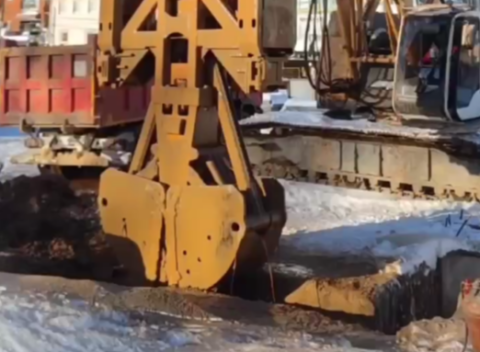 Каждая «захватка» представляет собой участок стены длиной 5–6 метров и глубиной до 30 метров. Сначала строители разрабатывают грунт под защитой бентонитового раствора с помощью грейфера, затем в траншею опускают металлический каркас и заливают бетон. Работы ведутся по технологии «стена в грунте».