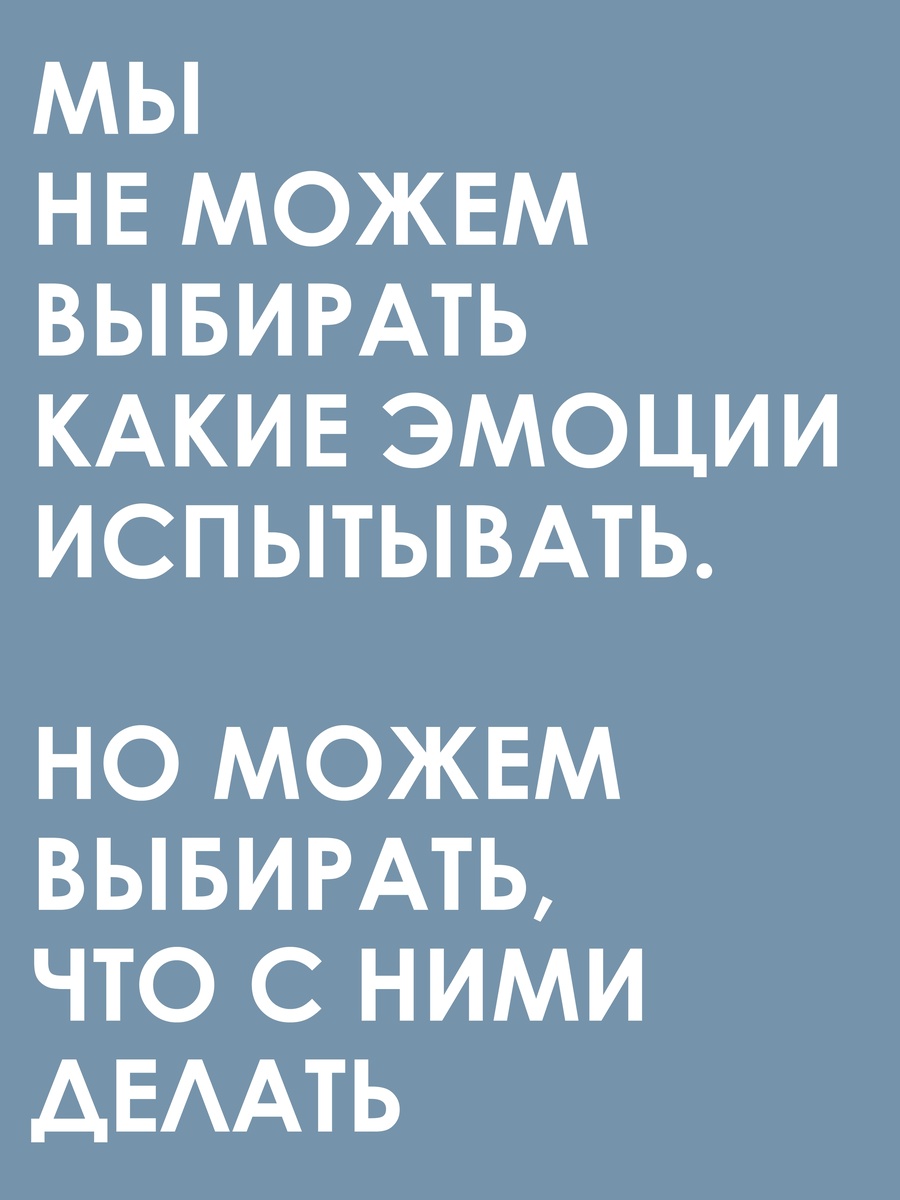 Знакомая цитата: мы не можем выбирать какие эмоции испытывать. Но можем выбирать , что с ними делать.