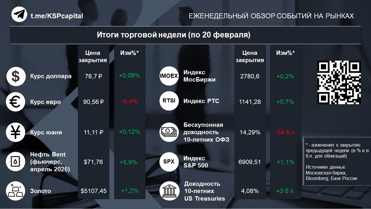 🇷🇺 Рынок акций РФ начал неделю с умеренного роста, отыгрывая решение ЦБ РФ снизить ключевую ставку и ожидания очередного раунда трехсторонних переговоров РФ-США-Украина по украинскому урегулированию (были назначены на 17-18 февраля). По итогам торгов индекс «МосБиржи» составил 2782,6 пункта (+0,2%), индекс РТС – 1144,06 пункта (+1%). Динамика цен «голубых фишек» оказалась смешанной в пределах 3,1%. Лидером роста стали акции банка «Санкт-Петербург» (+5,1% и +12,6% «префы»). Банк сообщил в понедельник, что рассматривает возможность направить на выплату дивидендов по итогам 2025 г. 50% от чистой прибыли по МСФО. По итогам 1-го полугодия 2025 г. акционеры банка получили дивиденды в размере 16,61 руб. на одну обыкновенную и 0,22 руб. на одну привилегированную акцию. Всего на выплату дивидендов за 1-е полугодие было направлено 7,4 млрд руб. (30% чистой прибыли по МСФО). В 2025 г. банк «Санкт-Петербург» снизил чистую прибыль по РСБУ с учетом событий после отчетной даты (СПОД) на 26,5% до 37,4 млрд руб. Чистая прибыль банка по РСБУ без учета СПОД снизилась на 21,9% до 39,7 млрд руб.