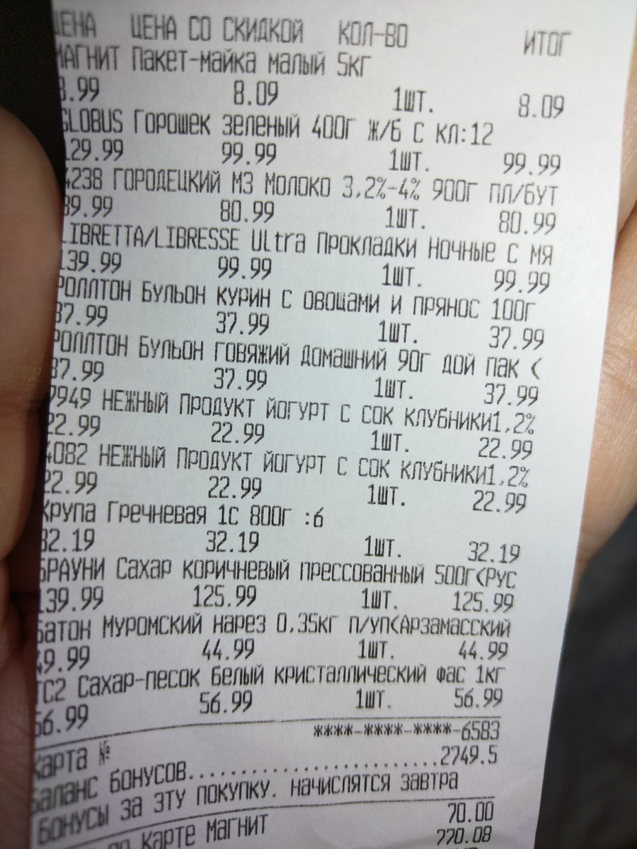 Вообще очень скромные покупки стали. Хлеб, сахар. Дешевые крупы. Молоко.