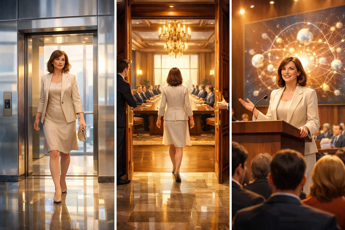 У двери конференц зала ее ждал ассистент. Мужчина поздоровался, убедился в готовности гостьи войти и открыл перед ней огромные высоченные двери из массива редкого дерева. Внутри помещение соответствовало своим дверям.