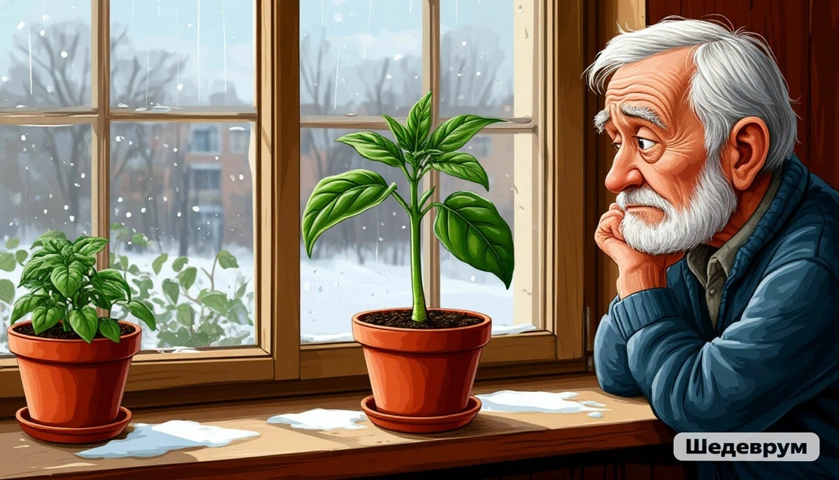 Я вспомнил свою квартиру: подоконник бетонный, зимой ледяной. Ставишь стаканчики с рассадой — и корни мёрзнут, даже если в комнате тепло. А сверху батарея жарит, создавая тропический климат для листьев. Вот и получается: сверху +25, снизу +15. Растение в шоке, не знает, расти или замирать.