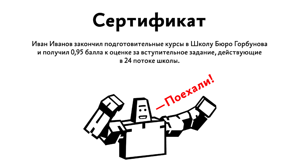 До конца февраля открыта бесплатная запись на подготовительные курсы в Школу бюро. С 1 марта стоимость обучения на курсах станет 5250 ₽, а шанс победить в конкурсе на бесплатное место в школе — ниже. Мы собрали три главные, на взгляд студентов, причины пройти подготовительные курсы: Сегодня студенты делятся тем, как подготовительные курсы помогли им поступить на бесплатное место на первой ступени. По результатам тестов студенты подготовительных курсов получают до 1 балла к оценке вступительного задания в Школу бюро. Заработанный балл действует в ближайшем потоке школы. Вы можете пройти курсы несколько раз, в зачёт идёт последний балл. Также баллы за тесты умножаются на 50 и прибавляются к стартовому рейтингу при поступлении в школу. От рейтинга зависит, пройдёт ли студент на следующую ступень и сможет ли получить на ней бесплатное место. «По факту, подготовительные курсы — новый стандарт для абитуриентов школ Бюро. Они помогают сделать вступительную работу сильнее и настроиться на само