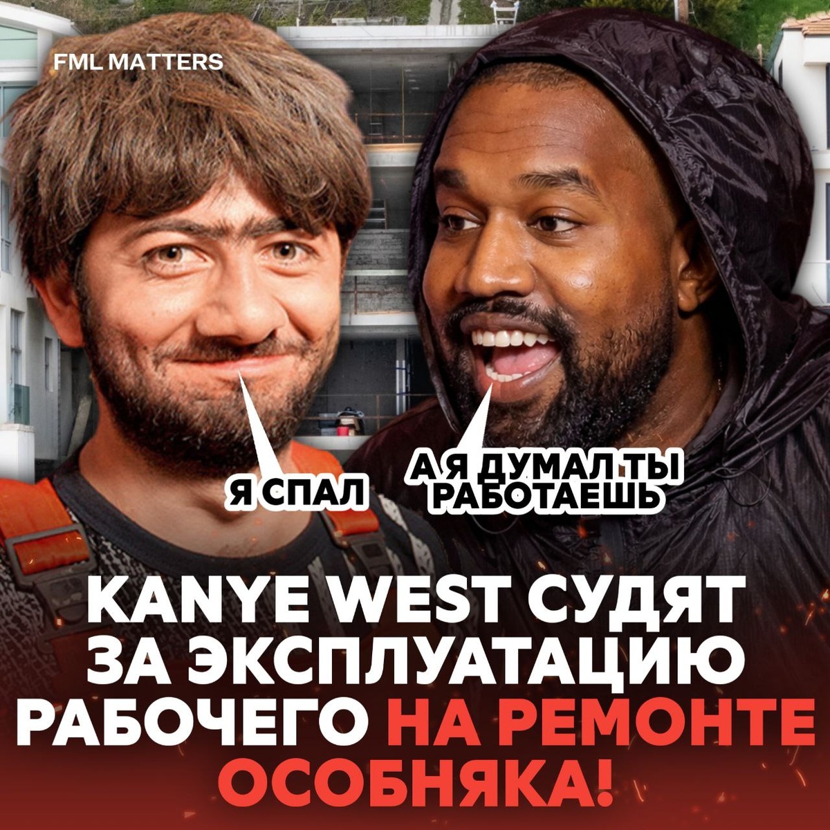 ! Стартовал суд над рэпером по иску бывшего подрядчика Тони Саксона. Тот утверждает, что Канье и Бьянка заставляли его работать по 16 часов в сутки в опасных условиях, задерживали зарплату и игнорировали травмы. Однажды Саксон уснул от усталости прямо на объекте, а проснулся от того, что Канье стоял над ним и сказал: «Я думал, ты будешь работать» Саксон требует 1 миллион долларов за дискриминацию, нарушение трудового кодекса и незаконное увольнение. Судья уже предупредил Йе и Бьянку, чтобы оделись в суд соответственно. Мнение? 🤨 💀 FML MATTERS