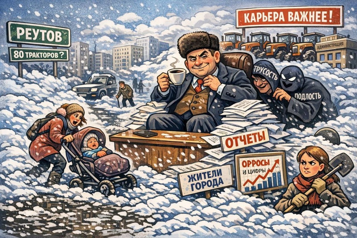 Последний серьёзный снегопад был пять дней назад, и с тех пор во многих дворах по-прежнему не убраны ни проезды, ни тротуары. Возможно, где-то техника работает, где-то действительно почищено и благоустроено. Но значительная часть жителей этого не видит — потому что выходит из подъезда и упирается в снежную насыпь. Во дворах люди своими силами расчищают парковочные места. Машины буксуют. Пешеходы идут по колее. Особенно тяжело смотреть, как женщина с детской коляской вынуждена буквально тащить её за собой через рыхлый снег — потому что иначе не пройти. Это не вопрос комфорта. Это вопрос элементарного уважения к жителям города. Во время предвыборной агитации один из кандидатов на пост главы городского округа заявлял, что в городе есть 80 тракторов. Восемьдесят единиц техники — внушительная цифра. Но где они сегодня, когда они действительно нужны? Почему спустя несколько дней после снегопада значительная часть дворов остаётся непроходимой? Самые большие трусы — это карьеристы. Каждый че