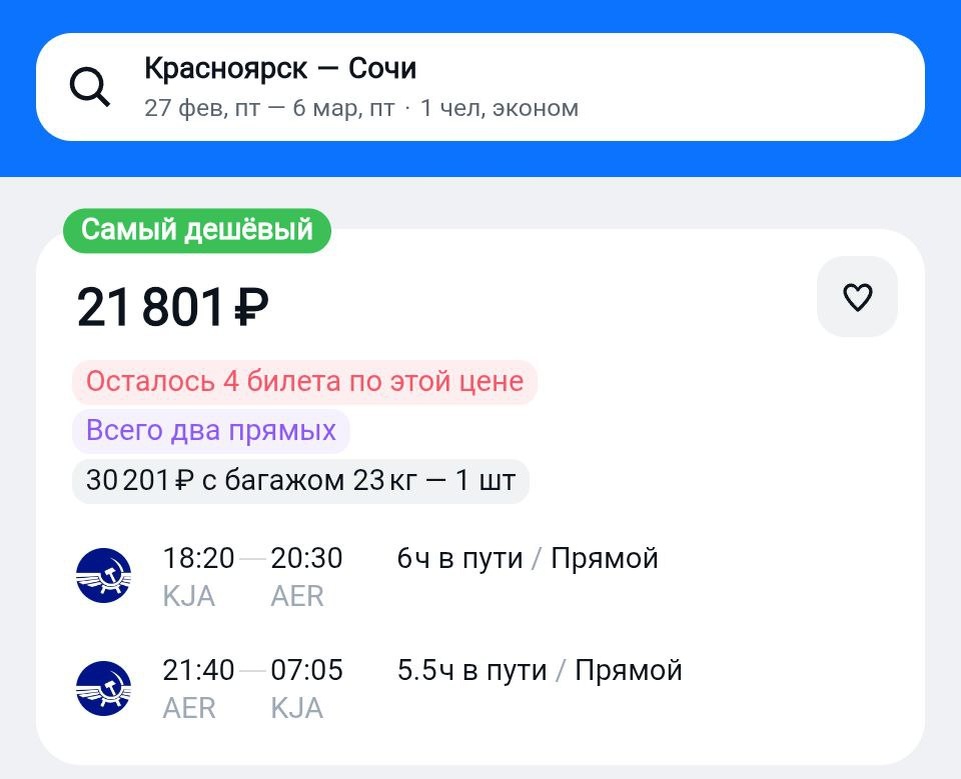 Меж тем, стоимость в Сочи на этой неделе уже такая 👆