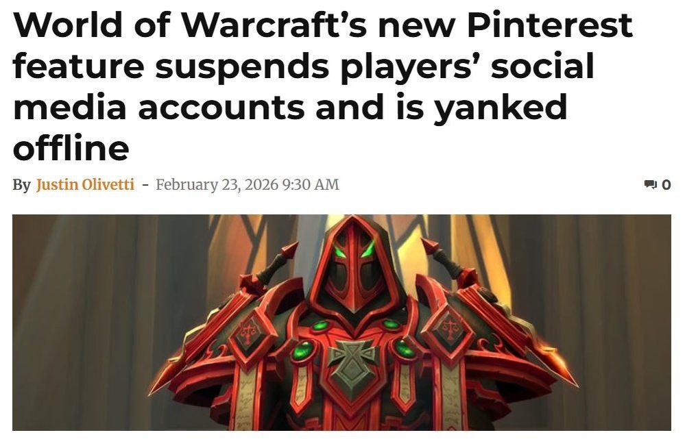 домов и снимками на досках. Однако это вызвало спам-фильтры Pinterest, заблокировав сотни учётных записей за подозрительную активность. Blizzard временно отключила его, чтобы решить проблему, и координирует свои действия с Pinterest. Многие игроки сообщили о мгновенных блокировках после одной такой публикации. Ну тут уже база с близзами, хз как это назвать 🙈 📱Twitch📱YouTube📱Rutube 📱Dzen🌐wowloot.ru📱vk