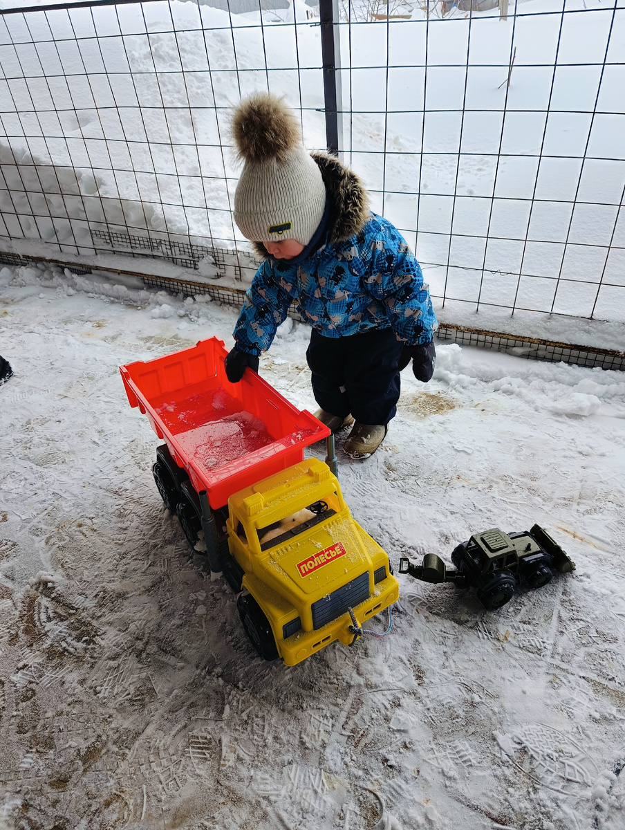 Взялись дружно за уборку снега, который ночью нанесло. Но желание как-то быстро пропало. Попробовали на снегокатах поехать, но с утра еще ветер был, снегом в лицо било, вернулись. Я уж думала, что домой проситься будут.