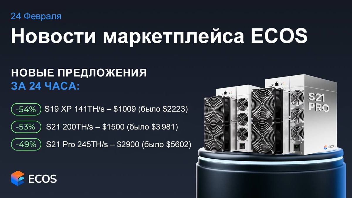 ECOS маркетплейс майнинга биткоина снижает порог входа и создает ликвидность для отрасли! Прямо сейчас на нашей площадке активны тысячи пользователей, проходят сделки и подключения на вторичном рынке. Новые предложения за последние 24 часа: Лучшие предложения, которые доступны на маркетплейсе прямо сейчас: ECOS Marketplace https://ecos.am/asics-marketplace