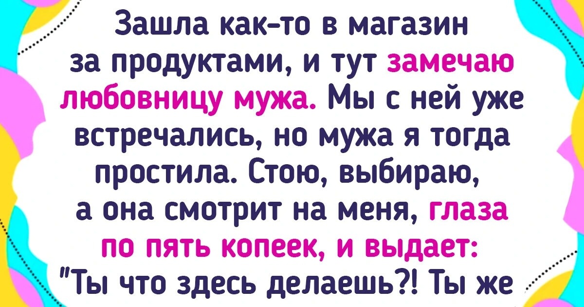 Такое обычное событие, как поход в магазин, иногда может превратиться в остросюжетное «вот это поворот!» Внезапные встречи, душещипательные речи или просто анекдотичная ситуация — это все может с нами случиться просто во время похода за хлебушком. А уж продавцам и подавно есть что рассказать о своих рабочих буднях. Зашла как-то в магазин за продуктами, и тут замечаю любовницу мужа. Мы с ней уже встречались, но мужа я тогда простила. Стою, выбираю, а она смотрит на меня, глаза по пять копеек, и выдает: "Ты что здесь делаешь?! Ты же умерла месяц назад!" Я выдержала театральную паузу, вздохнула и спокойно отвечаю: "Да вот, зашла продуктов купить. 40 дней отметить." Ее лицо в этот момент можно было продавать в аптеке как средство от давления — бледная, в шоке, дыхание перехватило. Я элегантно развернулась и ушла, оставив ее в глубокой духовной панике. В этот раз точно буду разводиться. Понял, что не все потеряно, когда в продуктовом магазине люди в очереди чуть ли не подрались, споря, кто