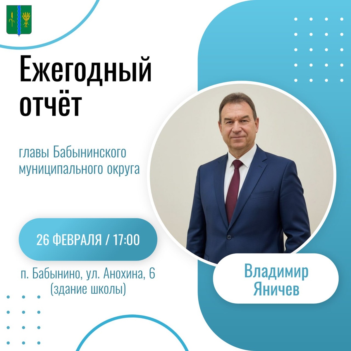 📢 Дорогие друзья! Приглашаем вас на отчет главы Бабынинского муниципального округа Владимира Васильевича Яничева о проделанной работе за