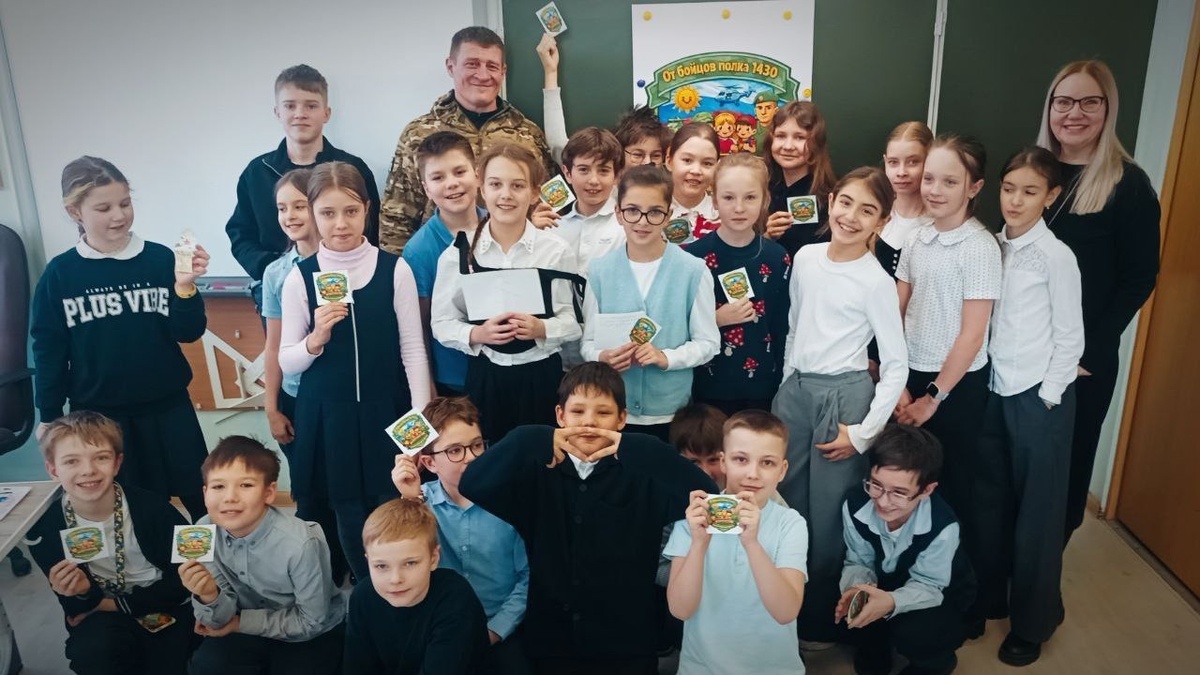 Боец 1430 гвардейского полка встретился со школьниками, которые пишут письма на передовую