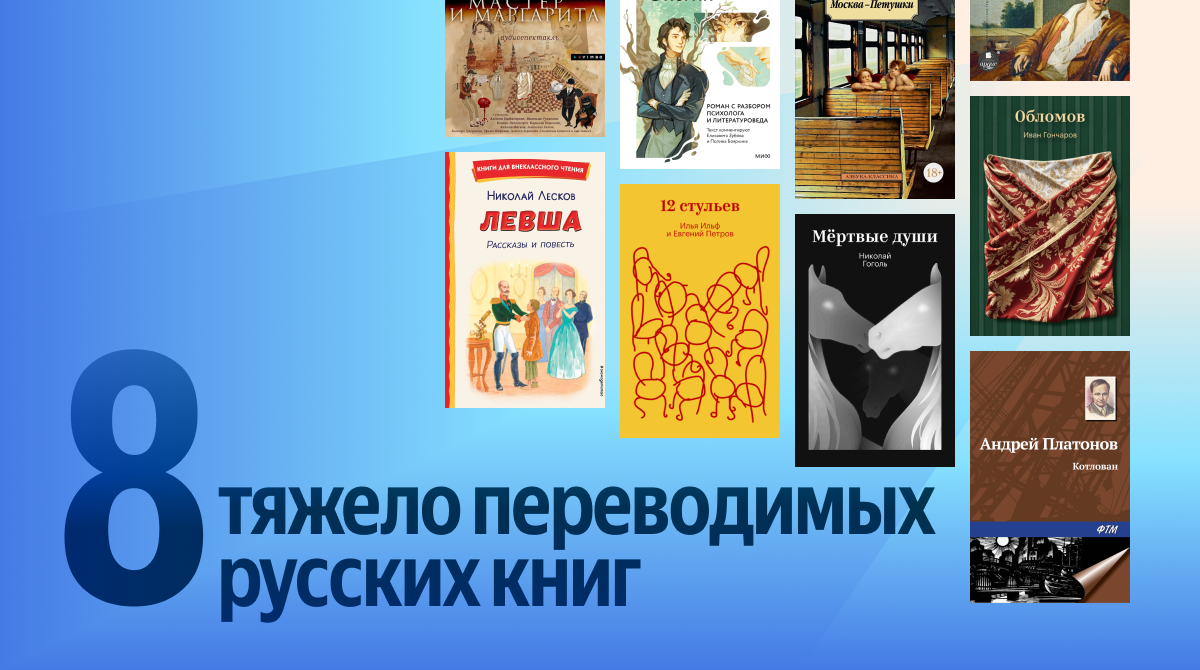 Как объяснить американцу, почему «квартирный вопрос» испортил москвичей? Или передать гениальность лесковского «мелкоскопа»? Мы собрали восемь произведений, где при переводе неизбежно теряются важные смысловые оттенки.