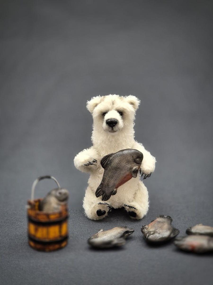 : 💸 Егорка открывает рыбный бизнес. ➡️Рост — 6 сантиметров. Запасов рыбы — как будто он держит оптовый склад 🐟 Я его связала, а он, оказывается, подготовился к зиме лучше всех 🤜 У него не просто рыба. У него МНОГО рыбы. Так много, что ведро уже не справляется и, кажется, подумывает об увольнении. ➡️Стоит такой маленький, в своей тёплой пушистой шапке-ушанке, и смотрит с видом: «Это стратегический запас. Не трогать. Перепись проведена». ➡️Рыбу он охраняет серьёзно. Если рядом проходит кто-то подозрительный, Егорка сразу включает режим: «Я вообще-то полярный медведь. Просто в компактной версии»🐻❄️ ➡️Шесть сантиметров меховой деловитости. У него рыбы больше, чем у некоторых планов на жизнь 💕 Если вдруг наступит ледниковый период — не переживайте. У Егорки всё под контролем. И под ведром. 🪣💖🎁