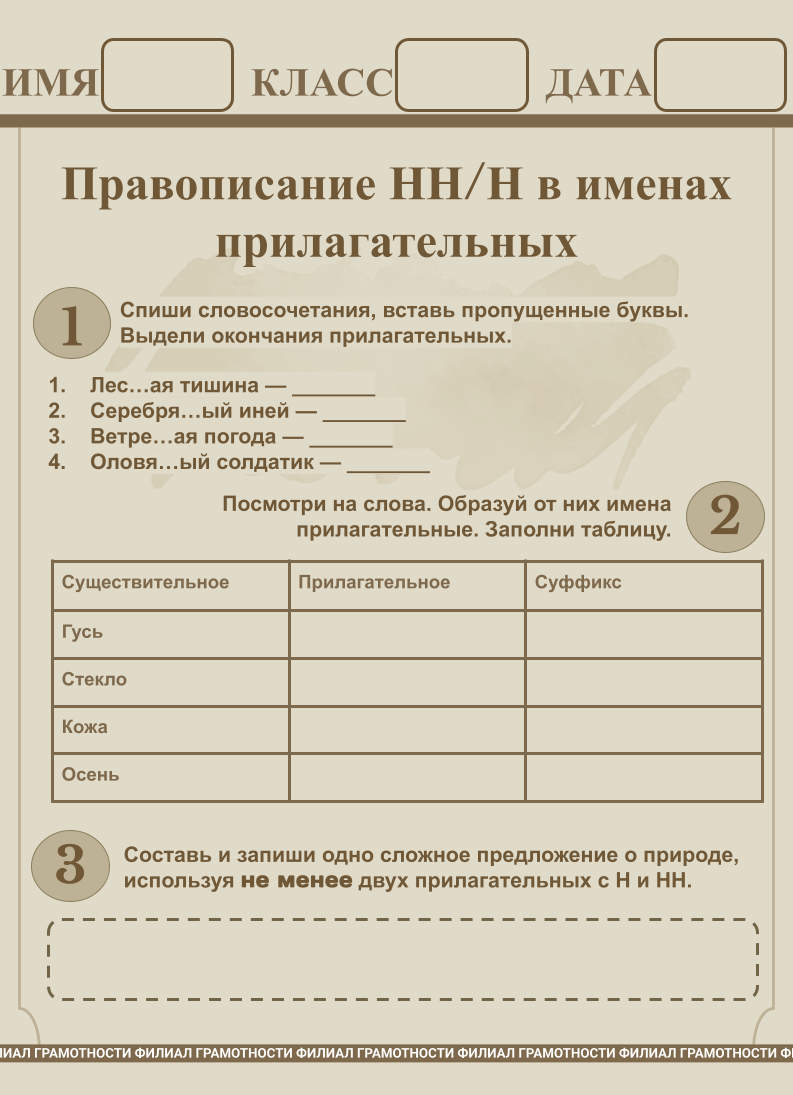 Н и НН в прилагательных. Рабочий лист. 6 класс