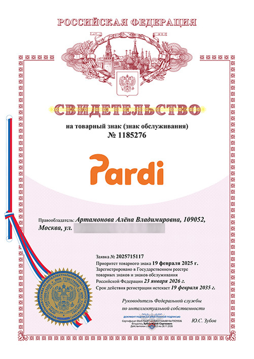 Мы официально зарегистрировали товарный знак Pardi.