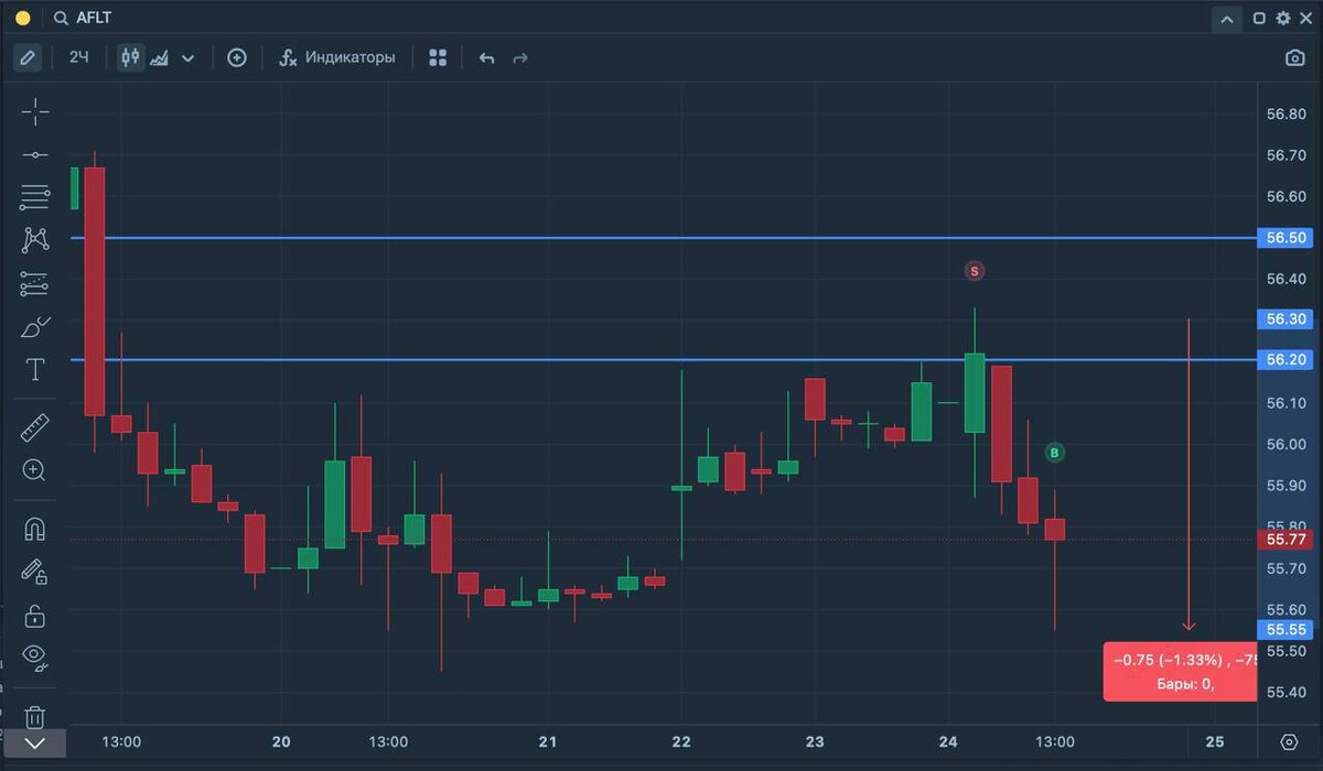 💯 Отличное решение сегодня - НЕ лонговать. С утра рынок дал восходящее движение, на новостях, но после, когда пропал позитив все вернулось на свои места. Откатились по плану, хоть и пришлось чуточку подождать. Аэрофлот +1%.