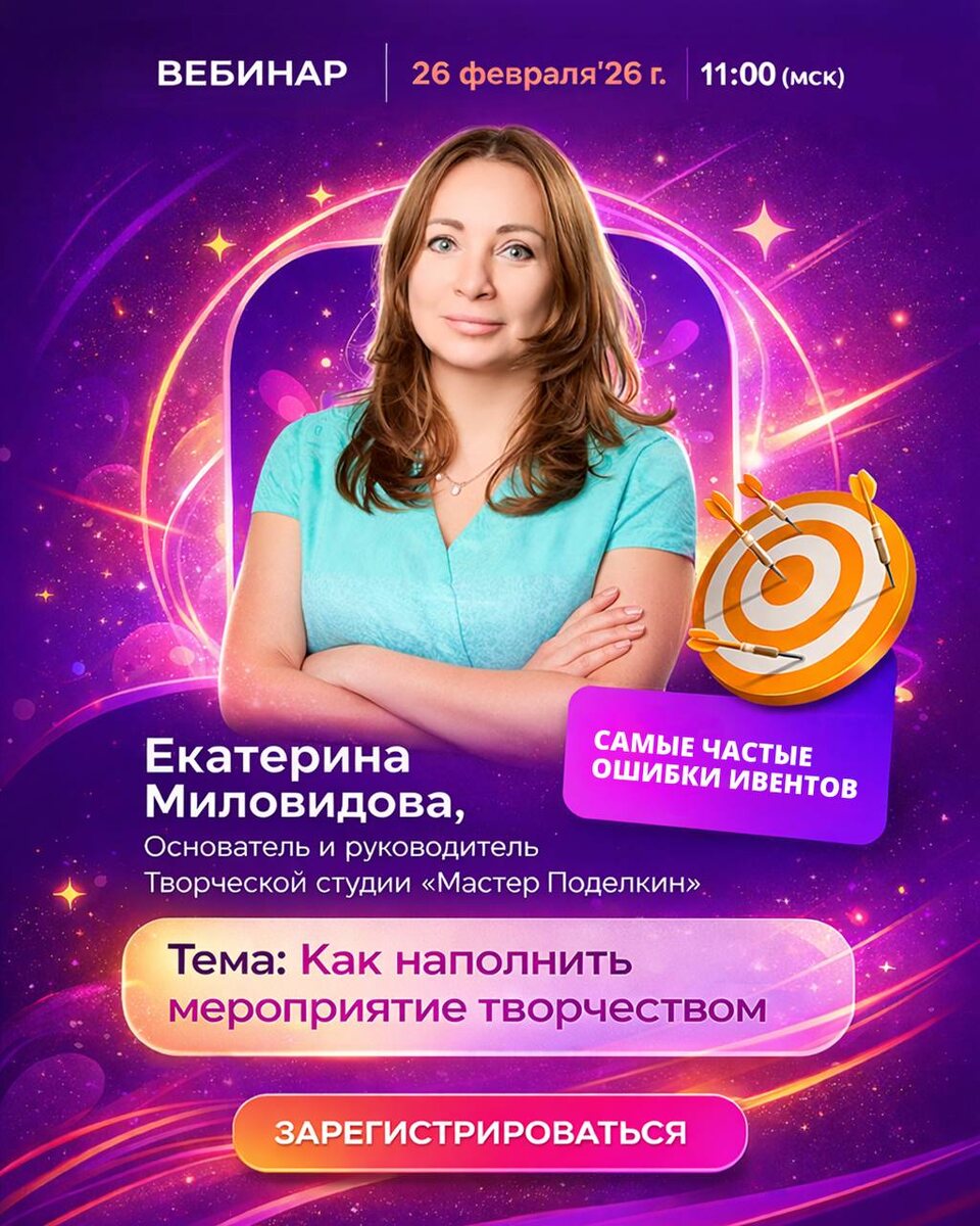 развлечение, а инструмент эффективности MICE. Этот семинар с руководителем студии «Мастер Поделкин» (опыт — 300+ выездных проектов) вы точно запомните! 📌 Тема: «Как наполнить мероприятие творчеством» 📌 Дата: 26 февраля, 11:00 по МСК Екатерина разберет «хирургию» ивента: 1️⃣ Уместность: Где творческие активности работают на результат, а где мешают. 2️⃣ Ошибки: Провальный тайминг, не та аудитория, неверный выбор активности — разбираем грабли. 3️⃣ Решения: Мастер-классы, которые адаптируются под цели бизнеса. 4️⃣ Подрядчик: Критерии отбора надежного партнера (опыт, кейсы, гибкость). Регистрация: https://clck.ru/3RraCY Повышайте эффективность своих событий профессионально 🚀