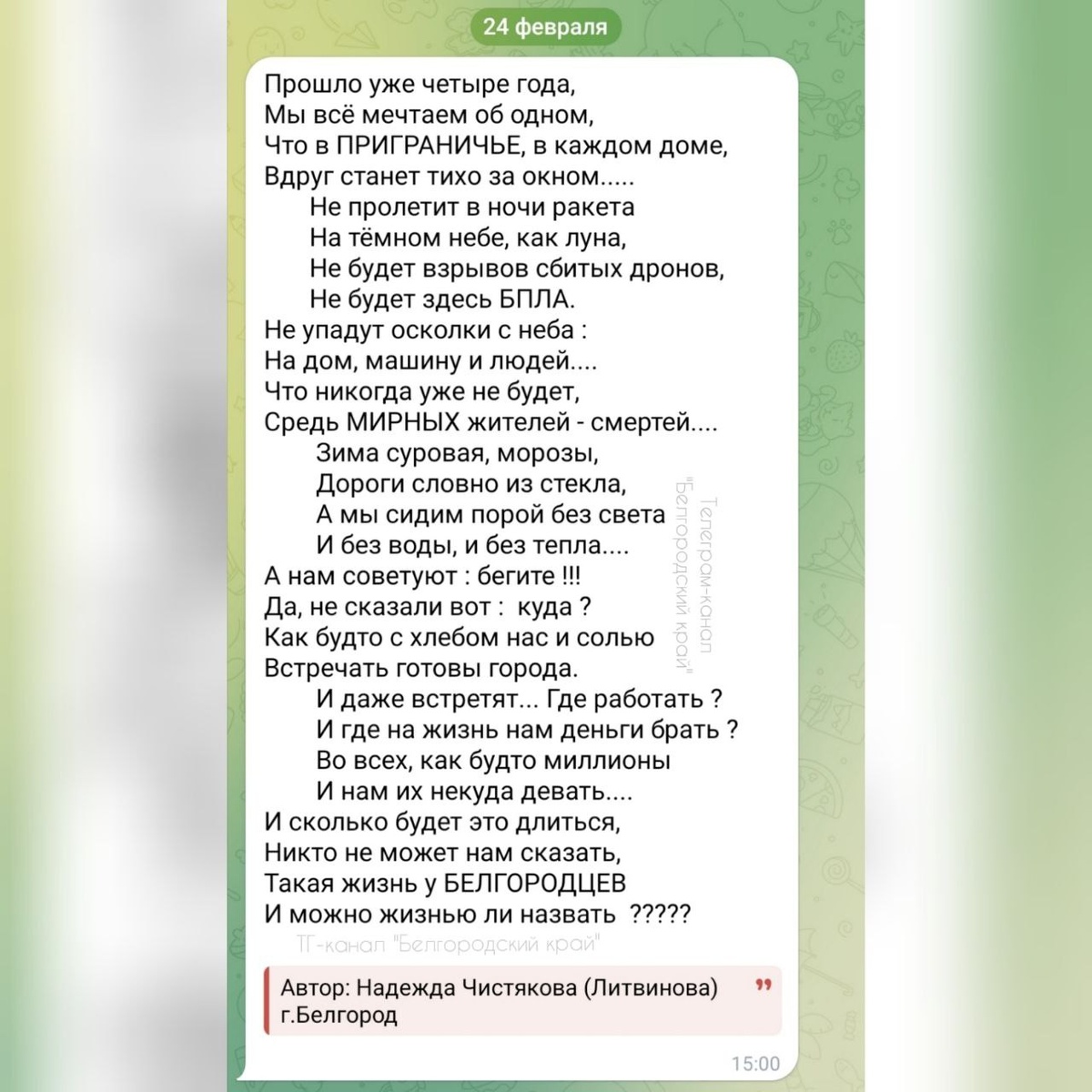 За стихотворение спасибо нашей подписчице Надежде Чистяковой (Литвиновой).