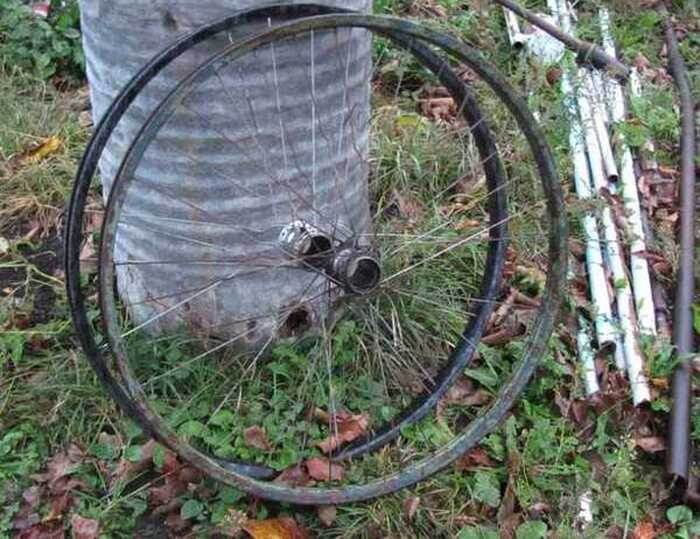 Напольная подставка для цветов является незаменимым элементом дизайна дачного участка, здесь речь пойдёт о том, как изготовить её своими руками. Если у вас есть загородный дом и вы увлекаетесь ландшафтным дизайном, то знаете, сколько труда и усилий требуется для его обустройства. Нужно постоянно генерировать новые идеи и применять их на своей загородной резиденции. Оригинальность мышления и немного усердия — и ваш участок будет выгодно отличаться от соседских дач. Закинуть автору на чай можно здесь. В этой статье мы рассмотрим, как можно сделать напольную подставку для цветов своими руками, напоминающую старую тележку, из подручных материалов. Для этого нам понадобятся: немного фантазии, обрезки полдюймовых труб, два старых велосипедных колеса, несколько брусков и досок, сварочный аппарат. Первым делом определимся с размером напольной подставки – нам хватит 50 см в ширину и 1 метр в длину. Болгаркой отрежем шесть кусков старой водопроводной трубы. Один отрезок будет равен 50 см, второй