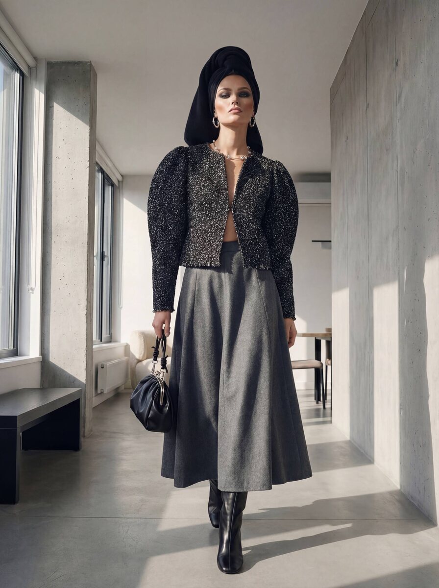 Образ с маркетплейса Она настолько уверена в себе, что может позволить заявиться в полотенце - и сделать это модным аргументом. ▪️Фактурный жакет с акцентными плечами: броня, но дорогая. ▪️Графитовая миди юбка А-силуэт: добавляет статуса и тишины ▪️Высокие сапоги: шаг звучит как утверждение. ▪️Колье и серьги с холодным блеском: как знак препинания в идеально выверенном образе. ▪️Сумка: завершающая образ, единственная уступка “я всё-таки человек”. Вердикт S.TON: В этом образе не просят внимания. В этом образе его забирают. XOXO, S.TON