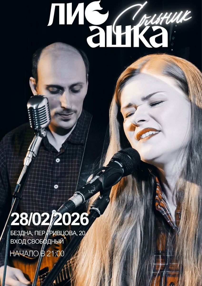 ♥ 28 февраля мы играем сольный концерт в баре «Бездна» (пер. Гривцова, 20, м. Садовая). И это будет тот самый формат, когда «ЛиСашка» звучит в новом составе: к нам добавились бас и кахон — песни стали глубже, плотнее и живее. Полтора часа наших песен — и тех, что вышли совсем недавно, и тех, что мы играем редко. Возможно, некоторые из них в таком звучании вы услышите впервые. Анонс делаем поздно, а бар правда небольшой — мест немного. Вход свободный, но лучше прийти пораньше, занять столик, заказать вкусную пиццу и раствориться в этой творческой атмосфере вместе с нами. Будет тепло. Очень ждём вас! Адрес: пер.Гривцова, 20 (бар Бездна) Вход свободный Начало: 21:00