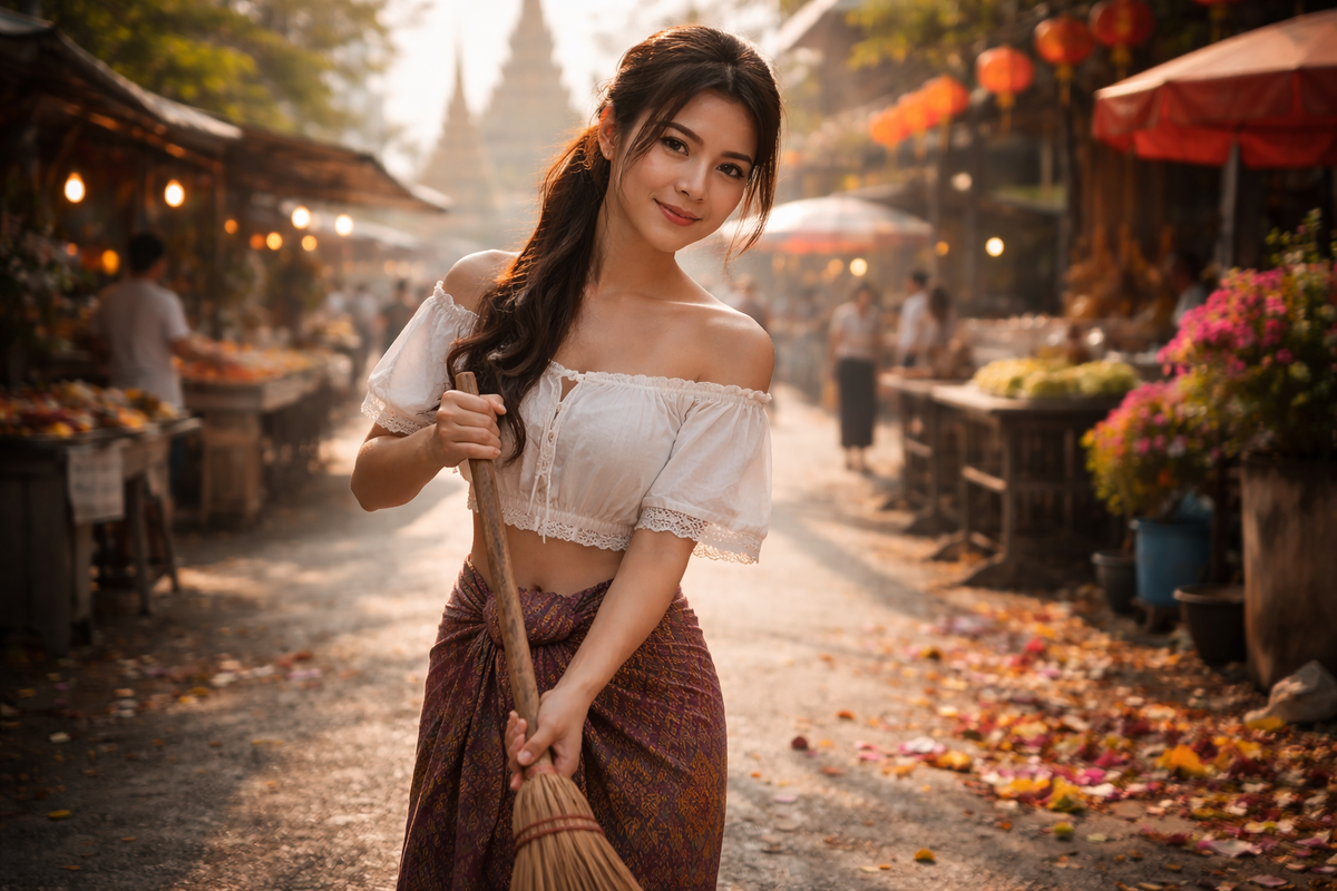 В мире, где социальные сети порой творят настоящие чудеса, произошла удивительная история. Обычная девушка из Таиланда, которая зарабатывала на жизнь уборкой улиц, в одночасье стала звездой модельного бизнеса – и всё благодаря короткому видео в соцсетях. Её зовут Нонг Ной, и до недавнего времени она была просто одной из тысяч тайских рабочих, занятых в сфере уборки. Каждый день – метла в руках, пыль и жара, скромная зарплата. Но однажды случайный прохожий снял её на видео – и это изменило всё. На кадрах Нонг Ной сосредоточенно подметает улицу, а камера ловит её естественную красоту: выразительные черты лица, лучевую улыбку, грациозные движения. Кто-то выложил ролик в социальные сети, и он мгновенно завирусился. За считаные дни видео набрало миллионы просмотров, а комментарии заполнились восхищёнными словами: «Настоящая принцесса!», «Ей нужно быть моделью!», «Она словно сошла с обложки журнала!». Видео стало популярным не только в Таиланде, но и за его пределами. Зарубежные СМИ подхвати