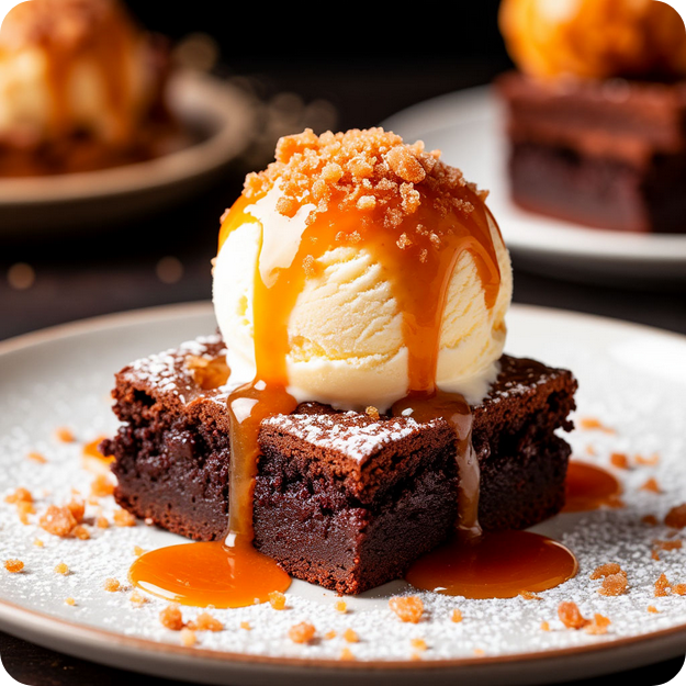 Знакомьтесь: брауни с мороженым и солёной карамелью. Это не просто десерт. Это эмоция. Это объятие. Это маленький конец света, но в самом вкусном смысле.