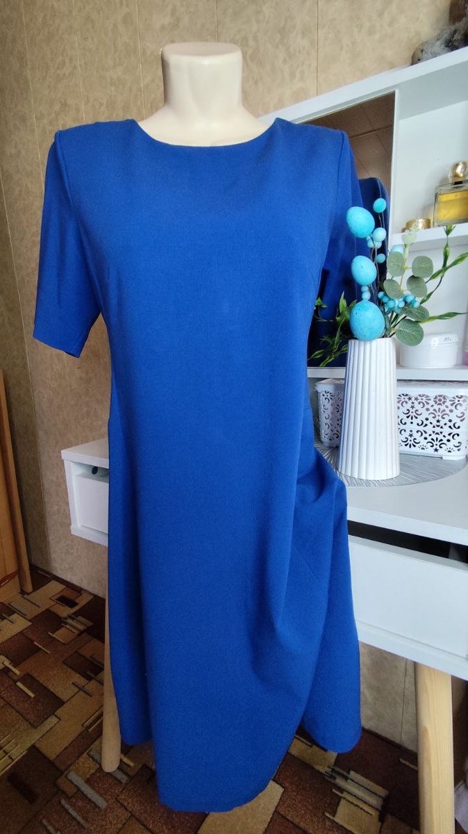 Состав ткани: 30% вискоза, 70% полиэстер. В идеальном состоянии. Размер 46-48 Приталенный крой, с вытачками на груди. Расклёшенное к низу. Длина по спинке - 89 см Полуобхват груди - 45 см Полуобхват от проймы рукава до проймы - 48 см Полуобхват талии - 44 см Длина рукава - 25 см Цена 500 рублей + пересылка