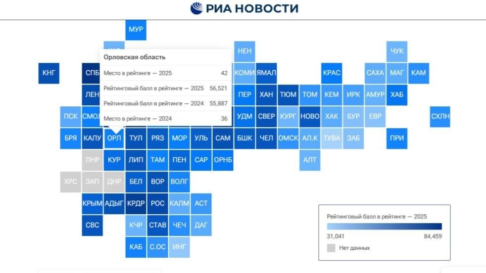 По итогам 2025 года Орловщина заняла 42-е место в рейтинге регионов России по качеству жизни. Годом ранее регион находился на 36-й строчке. https://orlvestnik.ru/news/orlovskaya-oblast-opustilas-na-shest-strochek-v-rejtinge-kachestva-zhizni ✅ Подпишись на канал 📩 Прислать новость 👉 Мы в MAX #Орловский_вестник #Орловская_область