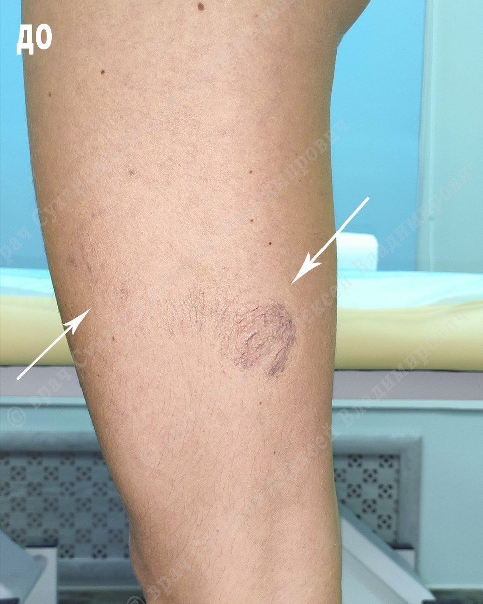 Пациентка обратилась с жалобами на эстетический дефект в виде сосудистых звёздочек на ноге. 2 или 3 года были потрачены на применение различных мазей и гелей типа Троксевазин и Венолайф, а также употребления Детралекса и Флебодиа. Результат - 0. Поначалу у меня былы мысли применить лазер, комбинируя разные длины волн. Но при выполнении УЗИ я обнаружил вену, которая выходила из глубины тканей и очень тесно сообщалась с поверхностью кожи именно там, где располагалсь сосудистая сетка. Кстати, до меня она уже делала УЗИ вен, которое показало, что вены в хорошем состоянии. Я тоже не увидел существенных проблем на "своём" УЗИ. Но были нюансы.... Всё зависит от того, какую задачу мы ставим себе. Если цель просто описать изображение, то для специалиста это часто малоинформативно. Если же задача заключается в том, "что делать с тем, что я вижу?", то начинается более глубокая работа. Это всё равно, что смотреть из окна одной и той же машины глазами водителя или пассажира. Как хирург и врач