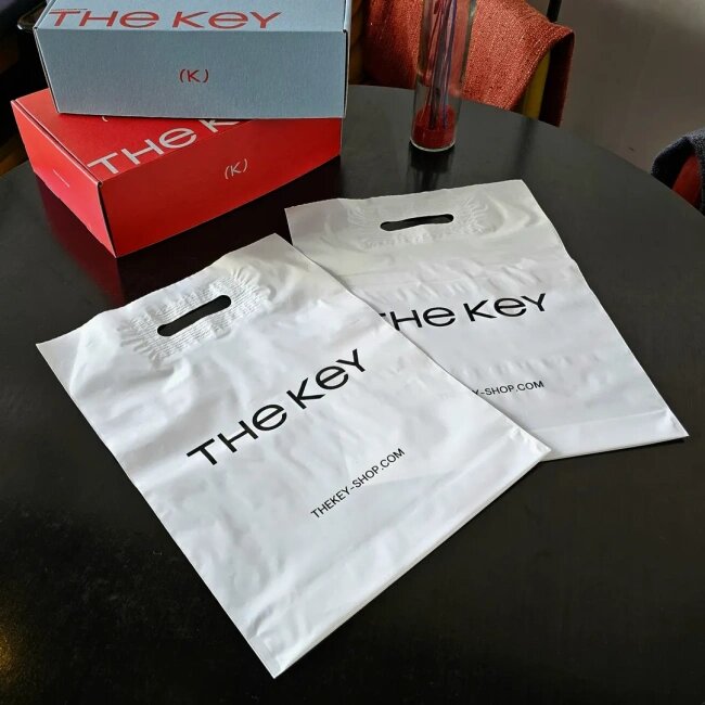 Толщина около 80 мкм — это рабочий стандарт для одежды. Более тонкий материал быстро теряет форму и может порваться под весом нескольких изделий. Усиленная ручка особенно важна для верхней одежды и комплектов. Если ручка растягивается, пакет визуально «провисает», и вместе с ним провисает впечатление о бренде.