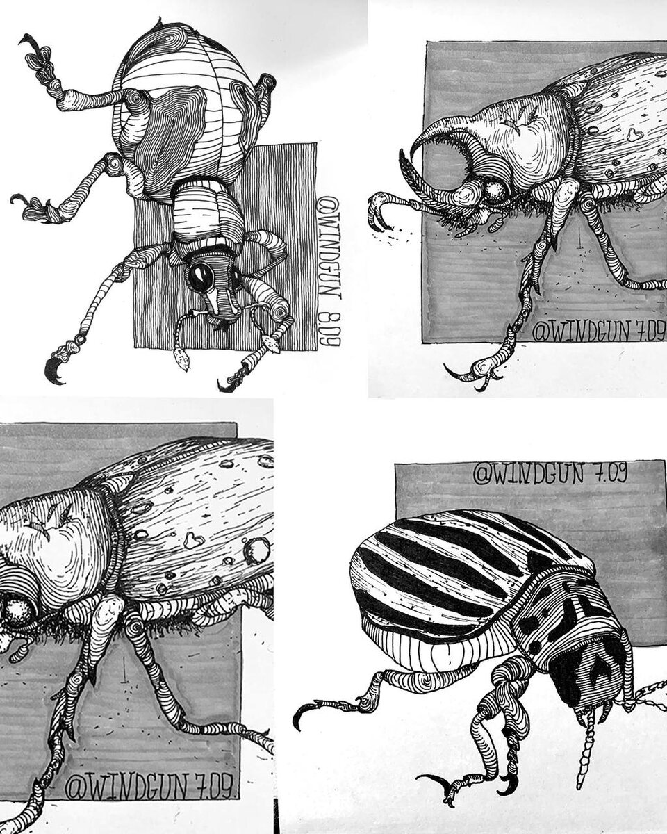 Скетчи Жуков от наших учеников с курса «Линейная анималистика