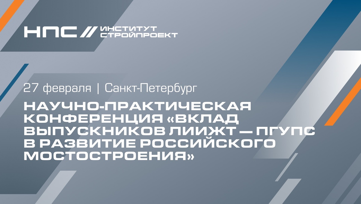 » Конференция пройдёт 27 февраля в Музее мостов в Санкт-Петербурге. Цель конференции — показать достижения выпускников ЛИИЖТ — ПГУПС и подчеркнуть верность вуза традициям и стандартам инженерного образования, заложенным ещё в Корпусе инженеров путей сообщения. Участники конференции расскажут об опыте проектирования и строительства мостов в самых разных уголках России и обсудят важные для отрасли темы: подготовку кадров, импортозамещение, проблемы эксплуатации мостовых сооружений, современные решения для большепролётных мостов и др. Закономерно, что Институт «Стройпроект» (входит в Нацпроектстрой) принимает участие в этой конференции: многие наши инженеры, проектирующие сложнейшие мостовые сооружения, — выпускники Петербургского университета путей сообщения. От Стройпроекта на конференции выступит Михаил Петров, выпускник ПГУПС, комплексный главный инженер проекта, имеющий большой опыт работы на уникальных объектах. Он расскажет об особенностях проектирования и строительства нового