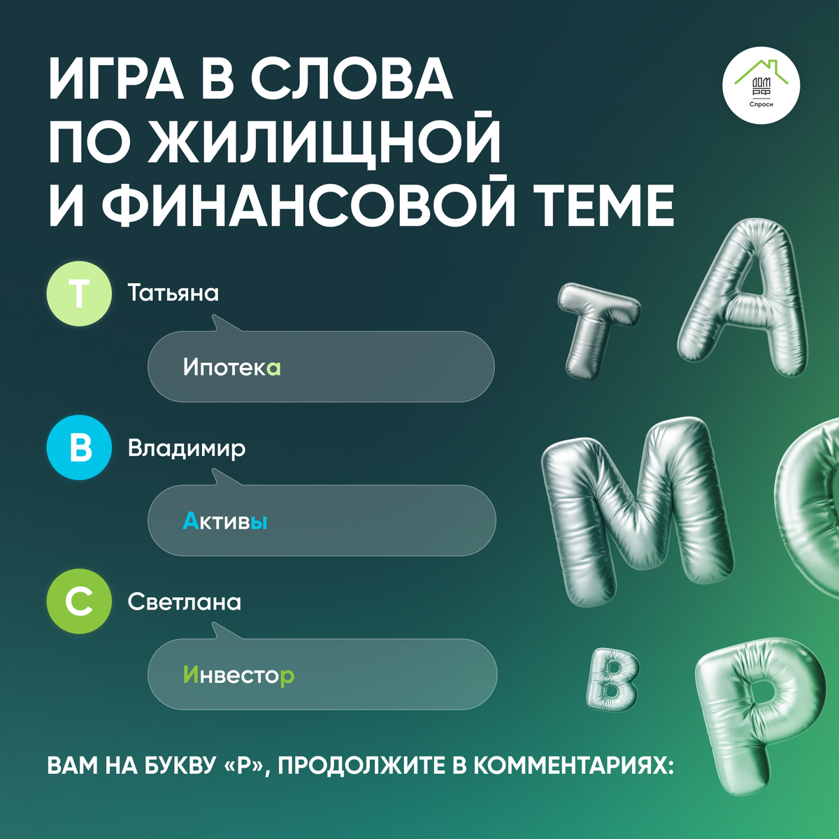 Помните игру, в которой нужно назвать слово, начинающееся на последнюю букву предыдущего? Предлагаем поиграть 👾 Но не в обычную версию, а в усложненную: слова должны относиться к жилищной или финансовой сфере.