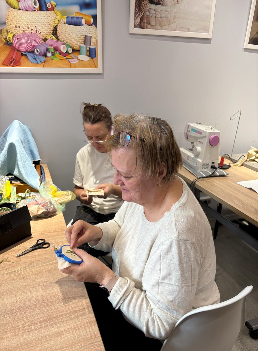 В последнее время я больше занимаюсь преподаванием онлайн. а вот моя ученица и подруга, с которой мы дружим почти 20 лет, Татьяна Волгина иногда проводит очные мастер-классы в Московском долголетии. Девушки довольно взрослые, не ленятся и вышивают под ее чутким руководством по моим мастер-классам, импровизируют, творчески подходя к схемам. Учиться никогда не поздно, тем более учиться вышивать! Покажу какие работы были сделаны в последнее время. Пока мы В Контакте, а кто-то и здесь на Дзене, вышивали большую мимозу размером 6,0 х 7,0 см девушки вышивали брошь с мимозой. Посмотрите, как аккуратно и красиво оформлена вышивка, обратная сторона сделана из фетра, край броши оформлен разноцветным бисером. Покажу здесь одну из моих мини-брошей с мимозой (в карусели мастер-класс), вдруг кто-то захочет сделать. А кто-то вышивал более сложный дизайн "Весенний букет", в котором много разных швов и техник. Такие, как плетение, наборные швы - французский узелок и пестик, швы - "в раскол" и "пет