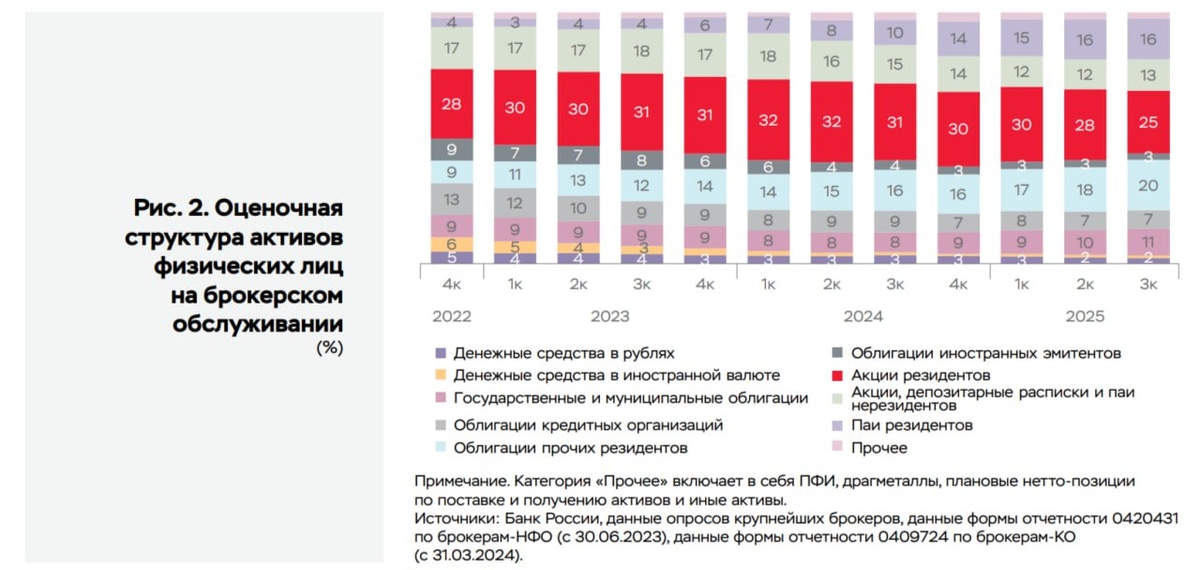 ❕ Россияне инвестируют так по данным брокеров и Банка России. 41% в облигациях X 25% в акциях. 16% в паях фондов отечественных X 13% в депозитарных расписках, паях фондов нерезидентов. У вас совпадают пропорции с соотечественниками? 🦉 Старое правило из мирового опыта - сколько вам лет, такая доля облигаций. 🤯 Акции и облигации - совершенно разные классы активов. Можно и так, и так, но это не взаимозаменяемые вещи, а исключающие друг друга. И да, доля акций вполне может быть и 100+%, а вот доля облигаций 100+% - нет ❌