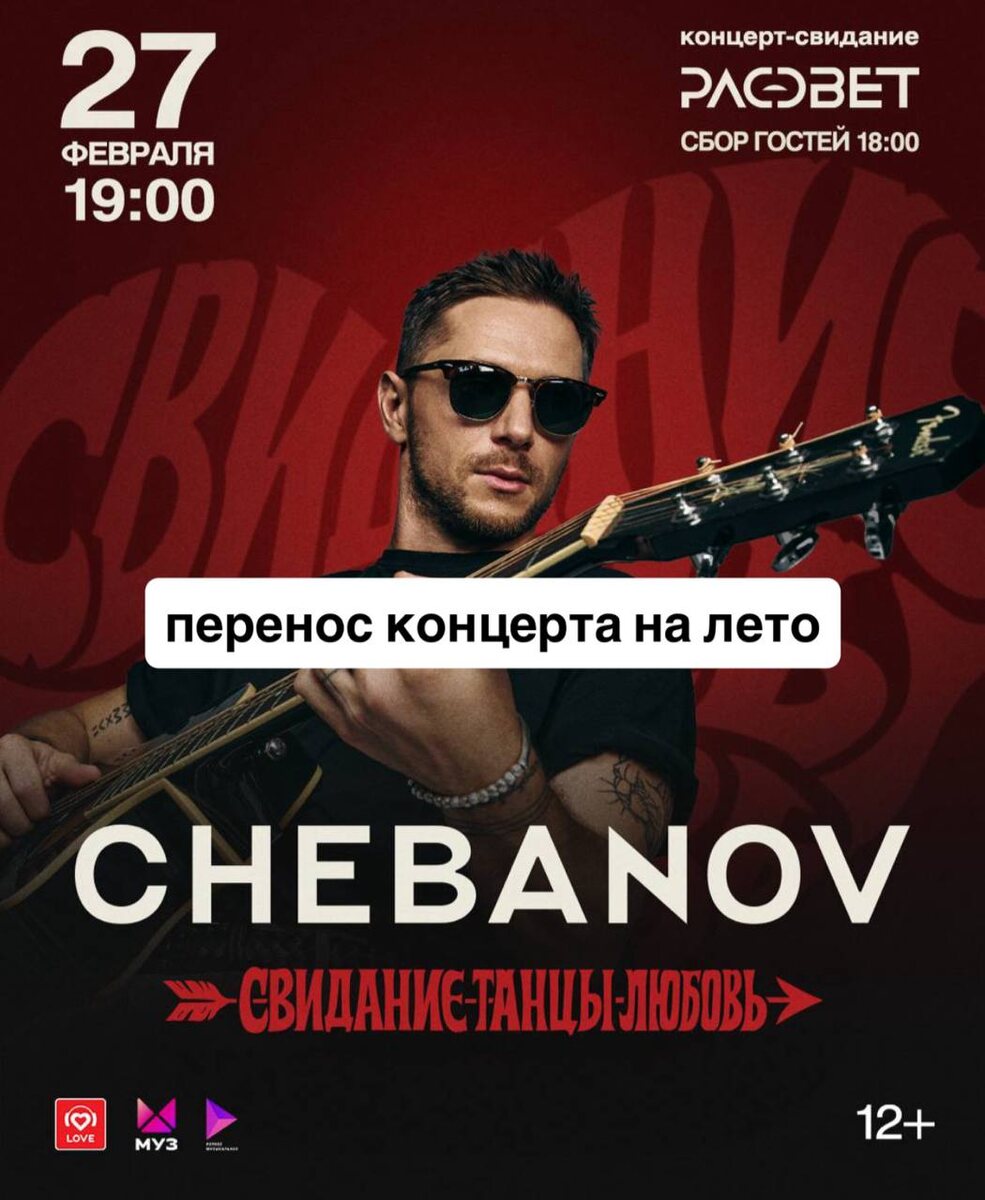 тура причина простая - после мощного концерта в москве мы поняли, что площадка, на которой планировалось мероприятие в питере, не позволяет реализовать механику «концерта-свидания» в том объёме и качестве, которое мы для вас задумали (как бы мы не старались), а делать вполсилы не наш путь, как вы знаете для меня «свидание, танцы, любовь» - это не просто концерт. это атмосфера, пространство для знакомств, интерактив, свет, ощущение настоящего романтического свидания с близкими людьми и если мы его деалем, то делаем на все 1000% летом в петербурге мы проведём его так, как он был задуман изначально - масштабно, красиво и очень атмосферно! все билеты остаются действительными, но если хотите их вернуть, то обратиесь к тому билетному оператору, через которого вы их приобретали спасибо вам за понимание. иногда лучше подождать немного, чтобы потом прожить это с максимальными эмоциями. увидимся летом ♥️