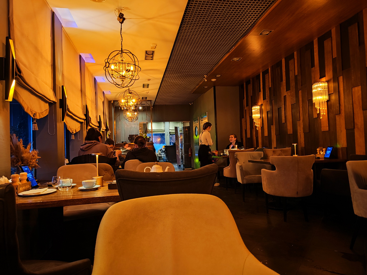 Продолжаю свой рассказ о нашей февральской поездке в Тулу. И сегодня расскажу про ужин в воскресенье в ресторане «Мама Мия», которое стабильно занимает первые строчки во всех городских рейтингах. Мы выбрали филиал по адресу Красноармейский проспект, 17А. Это отдельно стоящее двухэтажное здание, которое сразу привлекает внимание. Внутри находится огромный детский лабиринт, поэтому в выходные здесь настоящий аншлаг. Мы жили прямо напротив этого ресторана и в первый вечер наивно надеялись просто зайти и сесть. Не тут-то было! Очередь из семей, ожидающих столик, была настолько длинной, что мы решили не терять время и ушли гулять в центр. Но на следующий день, в воскресенье, мы пришли пораньше и — о чудо! — нам достался столик на первом этаже. Здесь нет лабиринта (он на втором), зато очень уютно: современный дизайн, приглушенный свет и невероятно удобные стулья. Сразу на входе нас предупредили, что из-за полной посадки ожидание блюд составит от 40 минут. Но так как мы планировали пообщаться