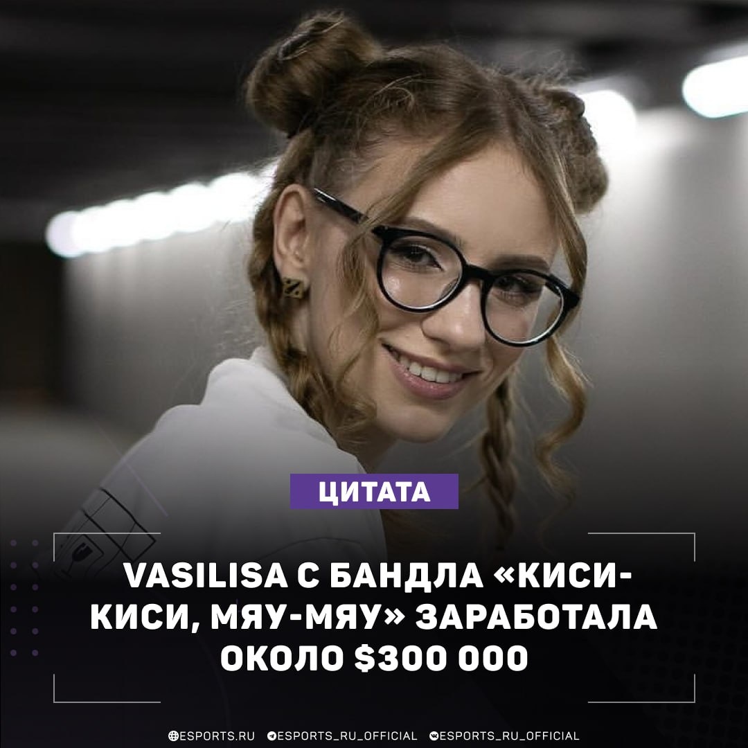 🤑 Daxak о заработке Vasilisa с бандла Популярными фразы становятся у девочек. Например, «Киси-киси, мяу-мяу» от Василисы. Понятное дело, что в Доте она ничего не понимает, даже не факт, что она что-то там комментировала. Просто сидит в студии аналитики, и из-за этого ей дали возможность записать фразу. Просто так подфартило. Она же с этого тысяч 300 баксов заработала, если не больше. Это после всех вычетов. Завидует? 👍 Esports.ru | Dota