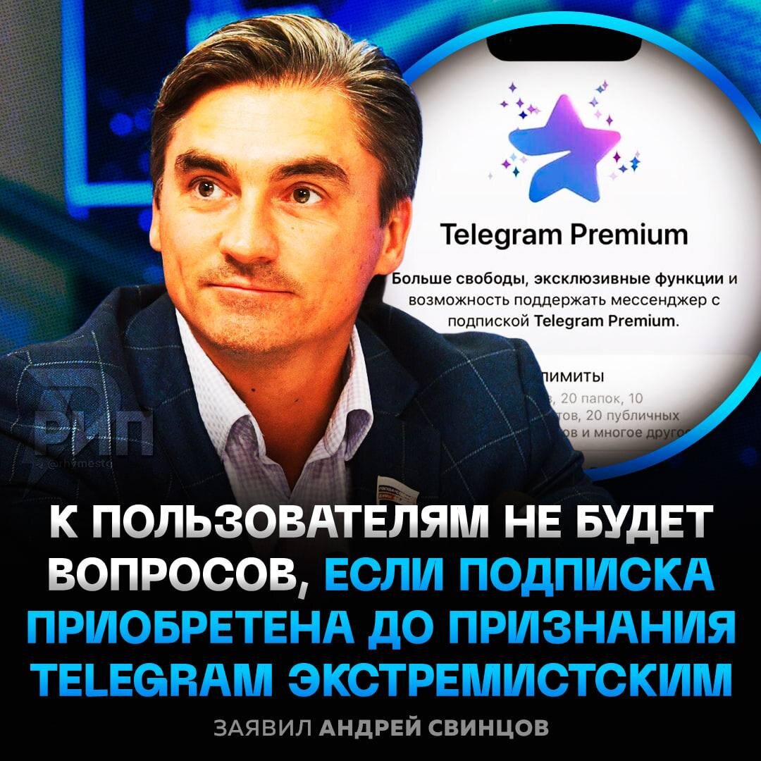 Если мессенджер признают вне закона, премиум-юзеров, которые купили подписку до закона, НЕ накажут, уточнил председатель комитета по информполитике Андрей Свинцов: «Для тех граждан, которые ранее оплачивали Premium в период, когда Telegram не был признан экстремистом, то, конечно, их никак не коснутся никакие ограничения. Но после признания, конечно, такие вопросы могут возникнуть». Пока живём!... пока 😰