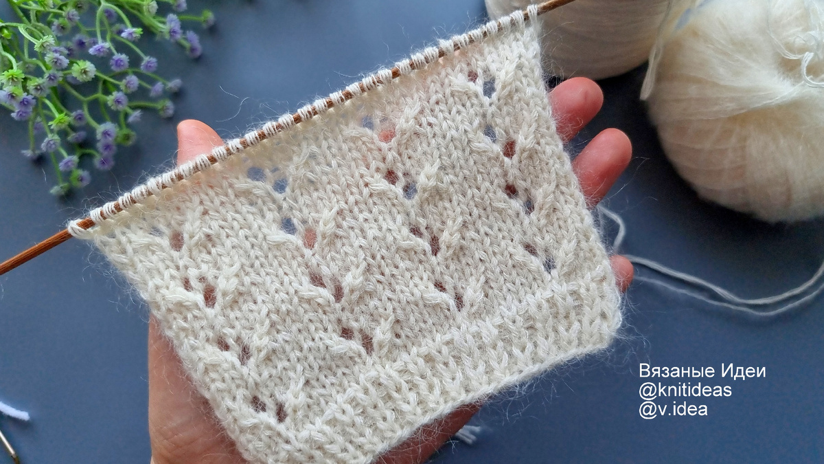 Предлагаю вашему вниманию очень простой красивый узор спицами! Узор "Веточки" идеально подходит для весны. Его легкость и воздушность напоминают о пробуждении природы, когда на деревьях появляются первые зеленые листочки. Описание вязания: Для вязания узора поворотными рядами наберите количество петель кратное 7 + 2 кромочных петли и вяжите по схеме: 1 ряд: лицевые петли 2 ряд и все четные ряды: изнаночные петли 3 ряд: кром, *2 лиц, 2 вм. лиц. вправо, накид, 3 лиц*, кром 5 ряд: кром, *1 лиц, 2 лиц. п. перекрестить вправо, 1 лиц, накид, 2 вм. лиц. влево, 1 лиц*, кром Повторяйте узор с 1 по 6 ряд При вязании по кругу нужно набрать количество петель кратное 7 и вязать по схеме, в четных рядах вязать лицевыми петлями. Подробное видео смотрите на RUTUBE и ВК Подписывайтесь на Вязаные Идеи в Telegram и MAX
