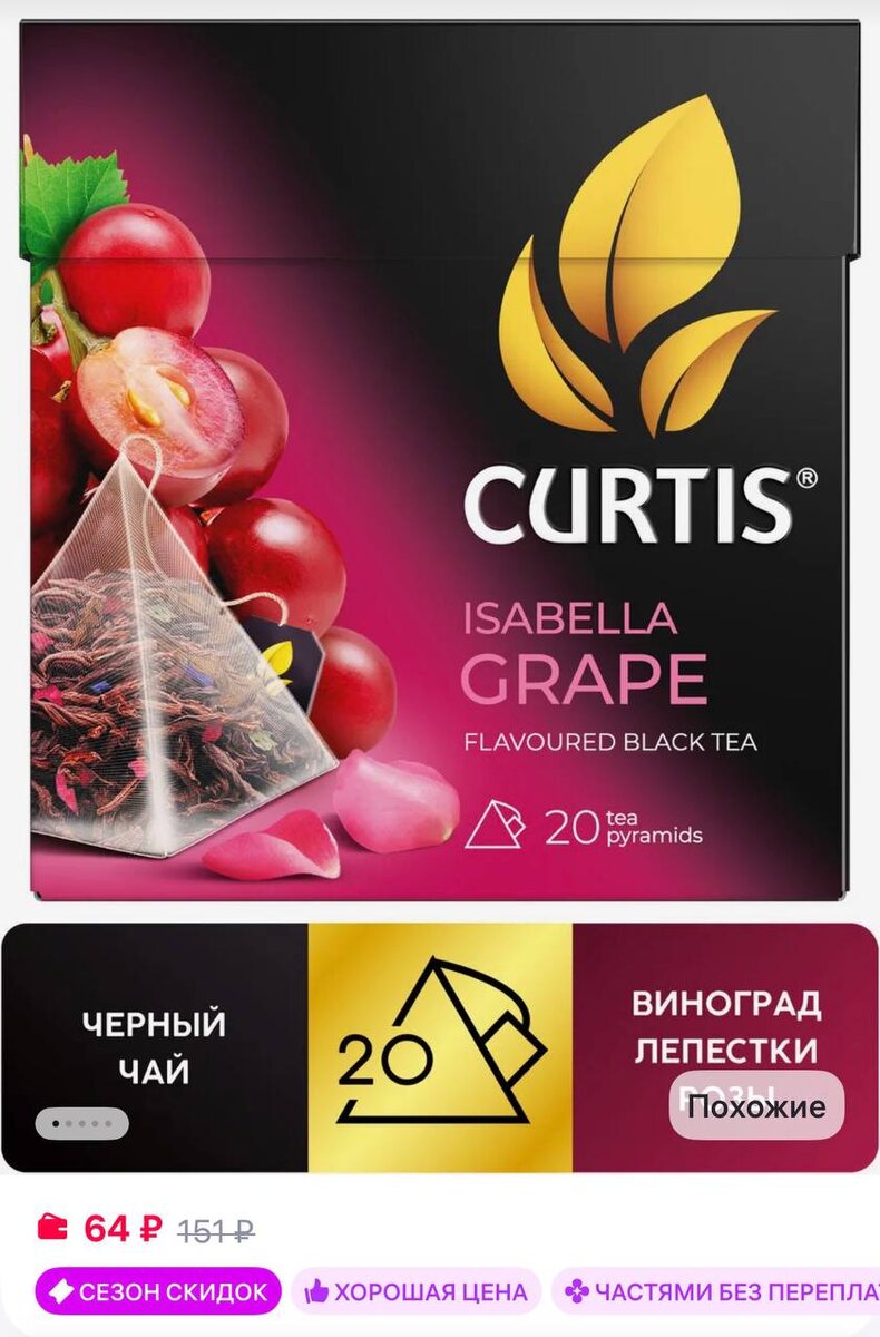 😀😀CURTIS Чай черный "Isabella Grape" 20 пирамидок