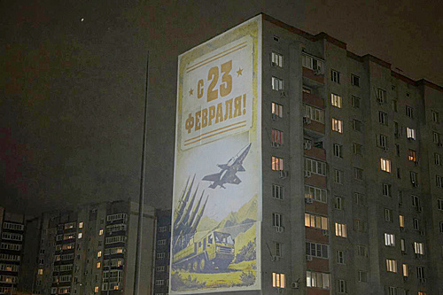 В городе Аксае Ростовской области накануне Дня защитника Отечества на стенах четырех многоквартирных домов появились праздничные проекции. Идея украсить фасады таким способом принадлежит местным властям и уже второй год реализуется в городе, рассказал ДОМОСТРОЙДОН.РУ начальник МКУ «Благоустройство и ЖКХ» Аксайского городского поселения Евгений Постарнак. / ФОТО domostroydon.ru Проекторы разместили на стенах домов по адресам Гулаева, 127, Садовая, 16, Вартанова, 14 и Вартанова, 20. Изображения, выполненные в стилистике советского времени, создают праздничное настроение у жителей и гостей города. «В советский период отображали тепло, благополучие, доброту, поэтому в этом направлении мы сейчас и украшаем город», − пояснил выбор такой визуальной эстетики. Впервые проекторы на фасадах опробовали в прошлом году − ко Дню Победы, а потом ко Дню города. Тогда идея получила положительный отклик, и в администрации решили продолжать. «Город у нас красивый, благоустроенный, прекрасный, каждый год